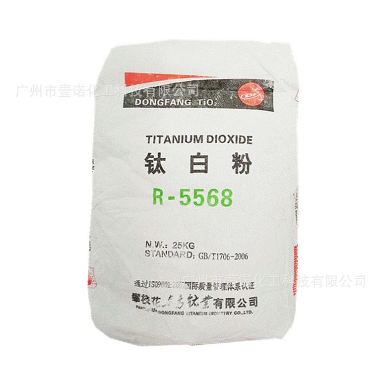 品牌:攀枝花東方鈦業 型號:R5568 產品特性:藍相高、易分散、高耐候性、高遮蓋力、低吸油量、良好體系相容性、優異加工流變性。 應用:廣泛用于聚烯烴、PVC、ABS、PS等色母粒、型材、板材、管材中,也可用于制皮革色漿、油性涂料等行業。 包裝:25KG/包 東方鈦業R-5568鈦白粉用鋅鹽穩定劑,鋯、鋁、硅包膜。具有藍相高、易分散、高耐候性、高遮蓋力、低吸油量、良好體系相容性、優異加工流變性等特性,是高品質塑料專用鈦白粉。東方鈦業R-5568鈦白粉推薦廣泛用于聚烯烴、PVC、ABS、PS等色母粒、型材、板材、管材中,也可用于制皮革色漿、油性涂料等行業。 數據指標: